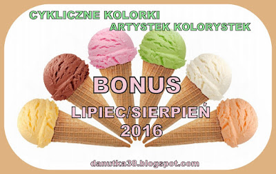 To już nałóg, że późnym wieczorem lub rano, w pierwszym dniu nowego miesiąca, zaglądam do Danutki co nam wymyśliła nowego;) Ponieważ wczorajsze emocje sportowe nie pozwoliły mi na szybki sen, rano też zerwałam się z łóżka o bladym świcie, trzymałam rękę na pulsie i czekałam co też Danusia wymyśliła nowego, bo nawet nie dopuszczałam myśli, że zabawa nie będzie trwała;)