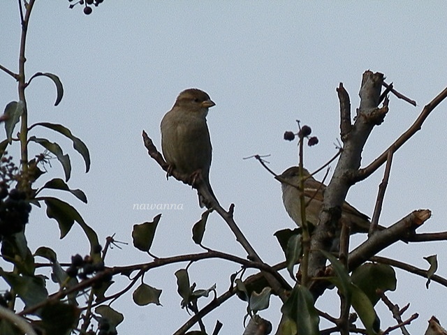 Na gruszy porośniętej bluszczem ptaki mają swój raj. Jest tam kilka gniazd, no i przede wszystkim ptaki czują się bezpiecznie. Kiedyś widziałam makolągwy, ale myślę że teraz całe drzewo zaadaptowały wróble.