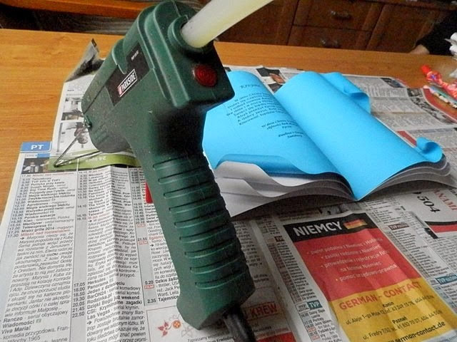 Uwaga na palce i na niedoklejenie księgi do podkładu (u mnie gazety)!
